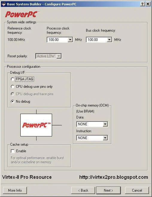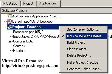 Default: ppc405_0_bootloop and select “Mark to Initialize BRAMs”. The icon will now have a small red cross signifying that it will not run on the PowerPC.