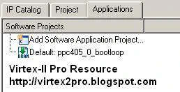Default: ppc405_0_bootloop. The purpose of this application is to occupy the PowerPC in the case that there is no other software application in the design. It simply keeps the PowerPC running in an endless loop.