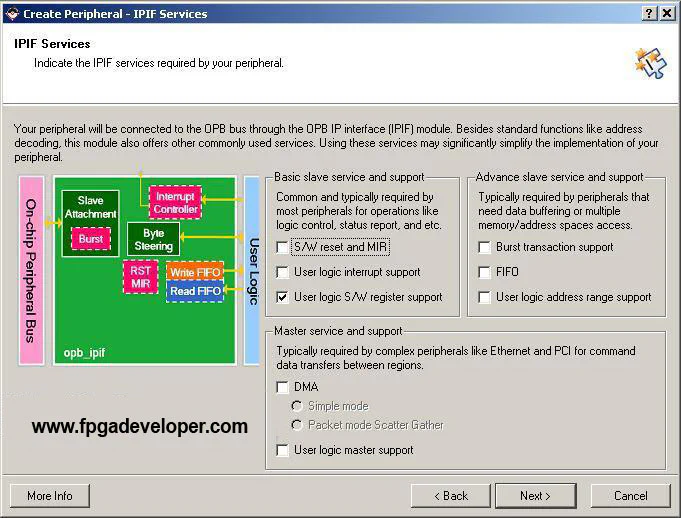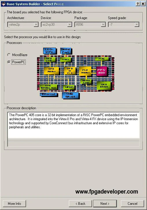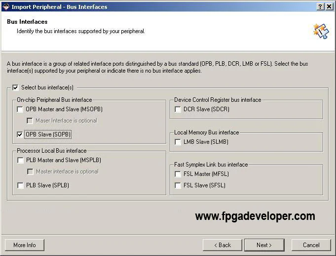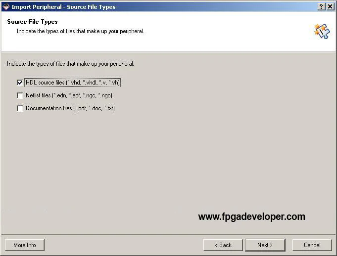 Now we are ready to create an instance of the peripheral into our project which can then be downloaded into the FPGA and tested by using simple code running on the PowerPC.