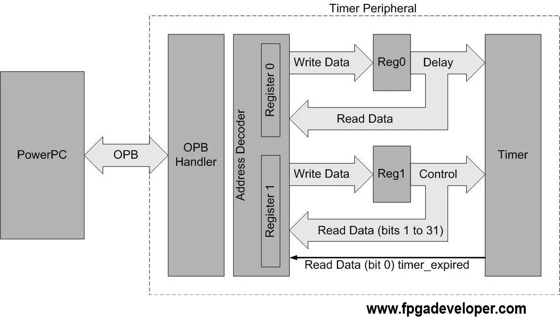 In this project, we will add code to a peripheral template generated by the Peripheral Wizard to create a simple timer. The timer peripheral will be used by the PowerPC to make the LEDs flash with a fixed period.
