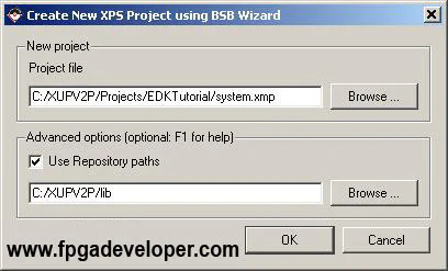 In the previous example, we created a project using the BSB and all of the work related to the hardware design was done by the BSB. In this example, we will create the same simple project, but this time we will add the GPIO for the LEDs manually. This way we will learn the process of adding extra peripherals to our design and we will also better understand the hardware design features of XPS.