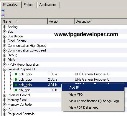 opb_gpio 3.01b and select “Add IP”.