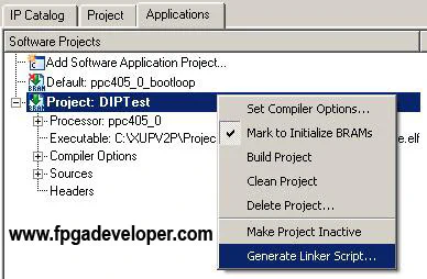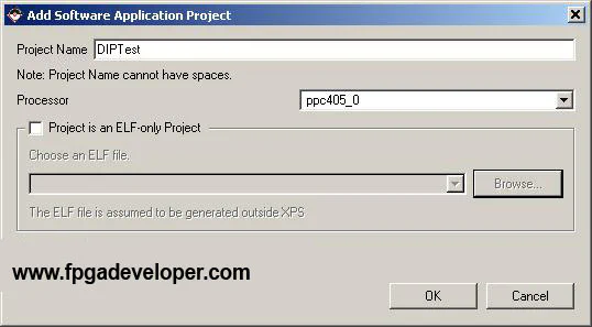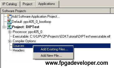 Now that the basic project is made, we can create a simple software application to run on the PowerPC to test the DIP switches.