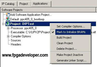 Default: ppc405_0_bootloop and select “Mark to Initialize BRAMs”. The icon will now have a small red cross signifying that it will not run on the PowerPC.