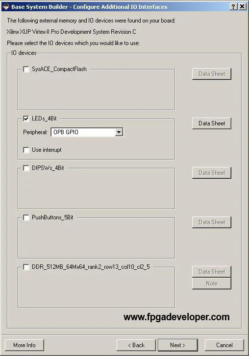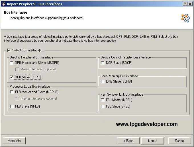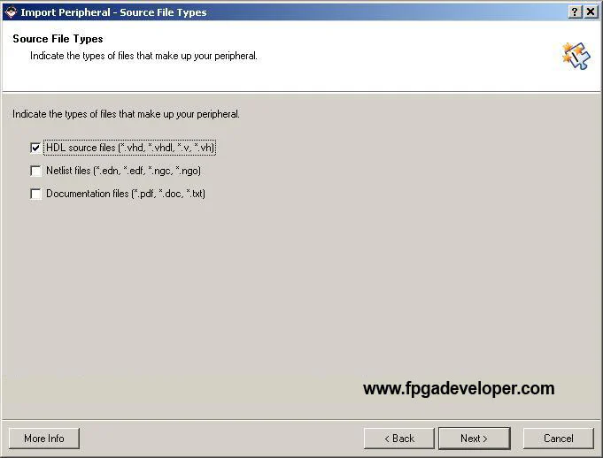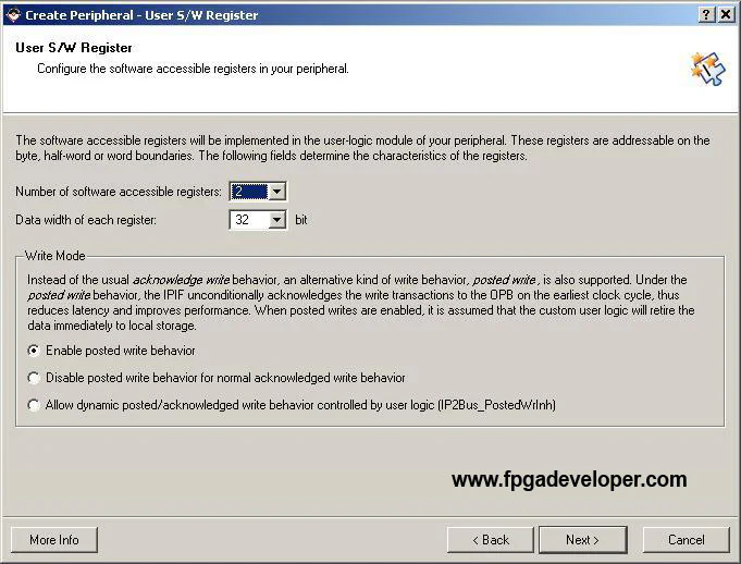 Now we are ready to create an instance of the peripheral into our project which can then be downloaded into the FPGA and tested by using simple code running on the PowerPC.