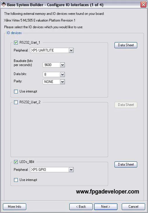 RS232_Uart_1, LEDs_8Bit and DIP_Switches_8Bit ticked and un-tick everything else.
