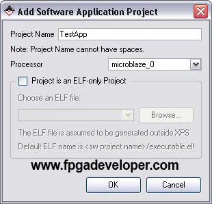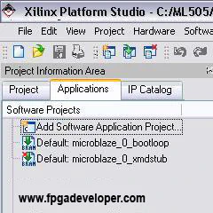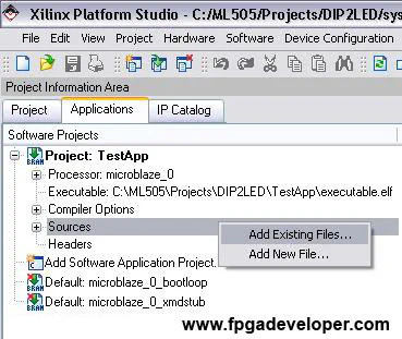 Now that the basic project is made, we can create a simple software application to run on the Microblaze to test the DIP switches and LEDs.