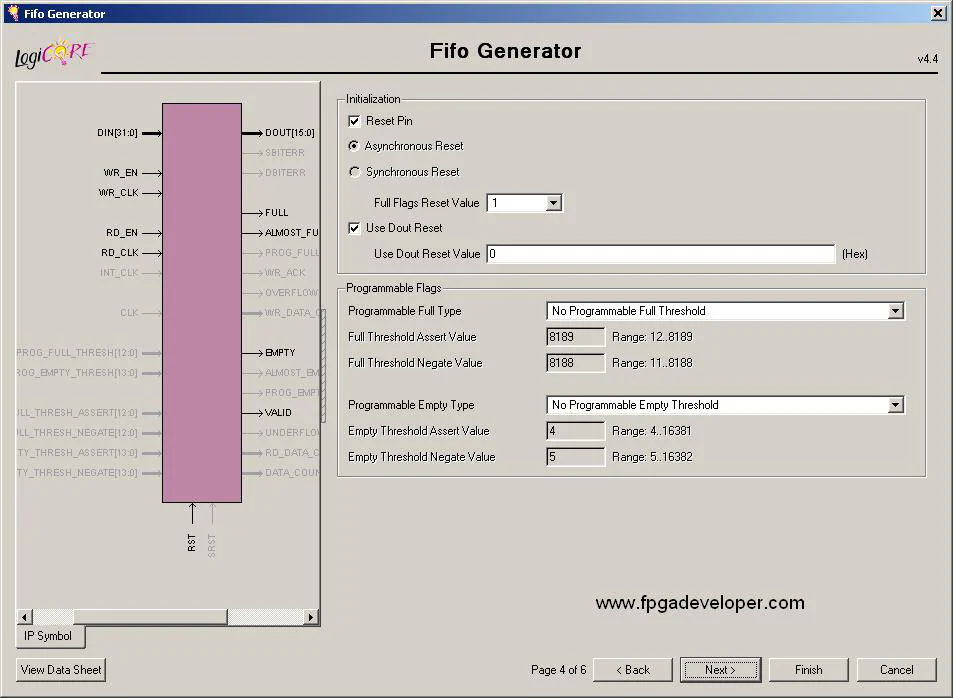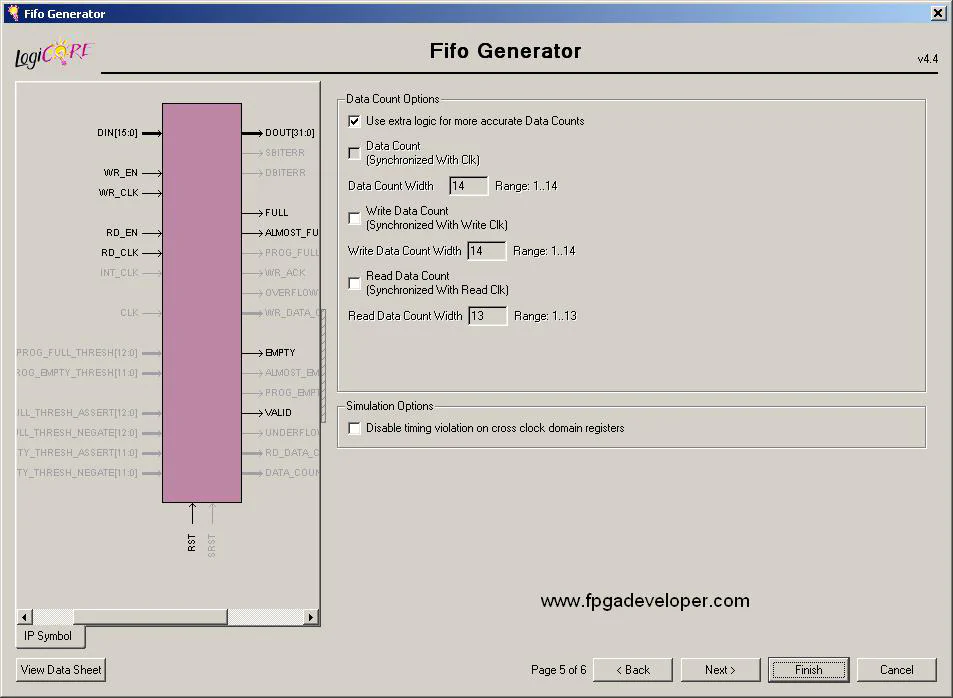 In some FPGA designs, it is necessary to interface two devices that operate in different clock domains. One solution to crossing from one clock domain to another is by using FIFOs with independent read and write clocks. In this tutorial, we will generate FIFOs with independent read and write clocks, and non-symmetric aspect ratios.