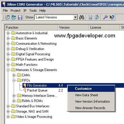 We first have to create a CORE Generator project that will contain our FIFOs.