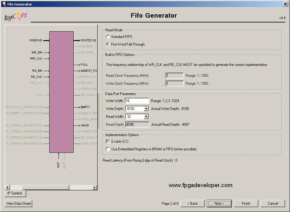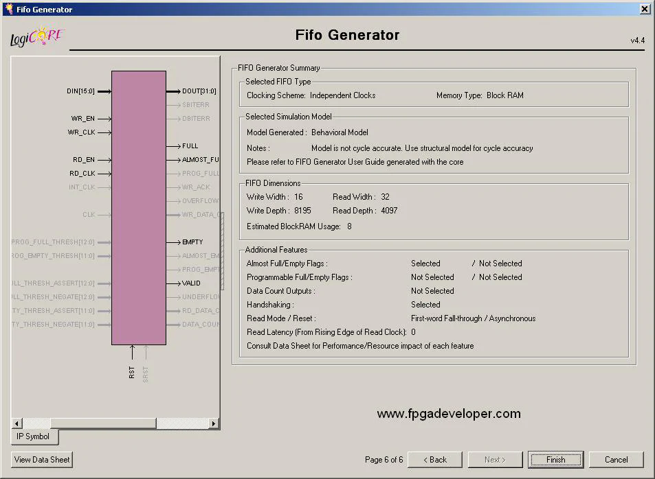 Generate the 16 bit to 32 bit FIFO Core