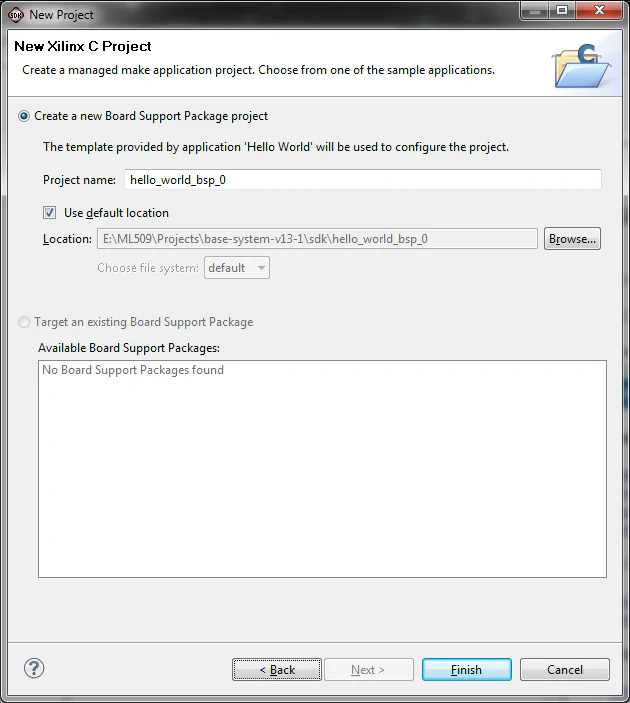 Think of the SDK workspace as a folder where you will manage the software application(s) for one particular EDK hardware design. You can place the workspace anywhere on your machine, but I personally like to organize my projects in a folder structure as follows: