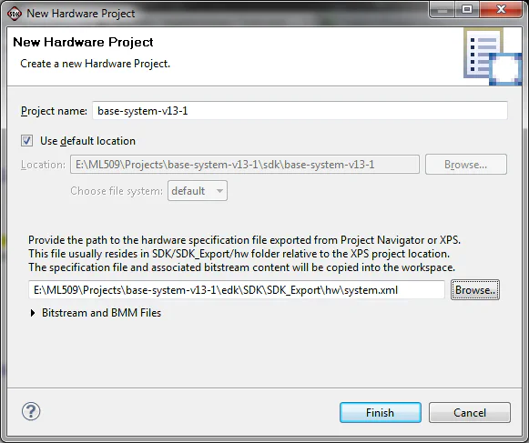 base-system-v13-1/edk/SDK/SDK_Export/hw/system.xml file. This file was created by EDK when we exported the project to SDK. If you cannot find this file, close SDK, open EDK and re-perform the “Export to SDK” step.